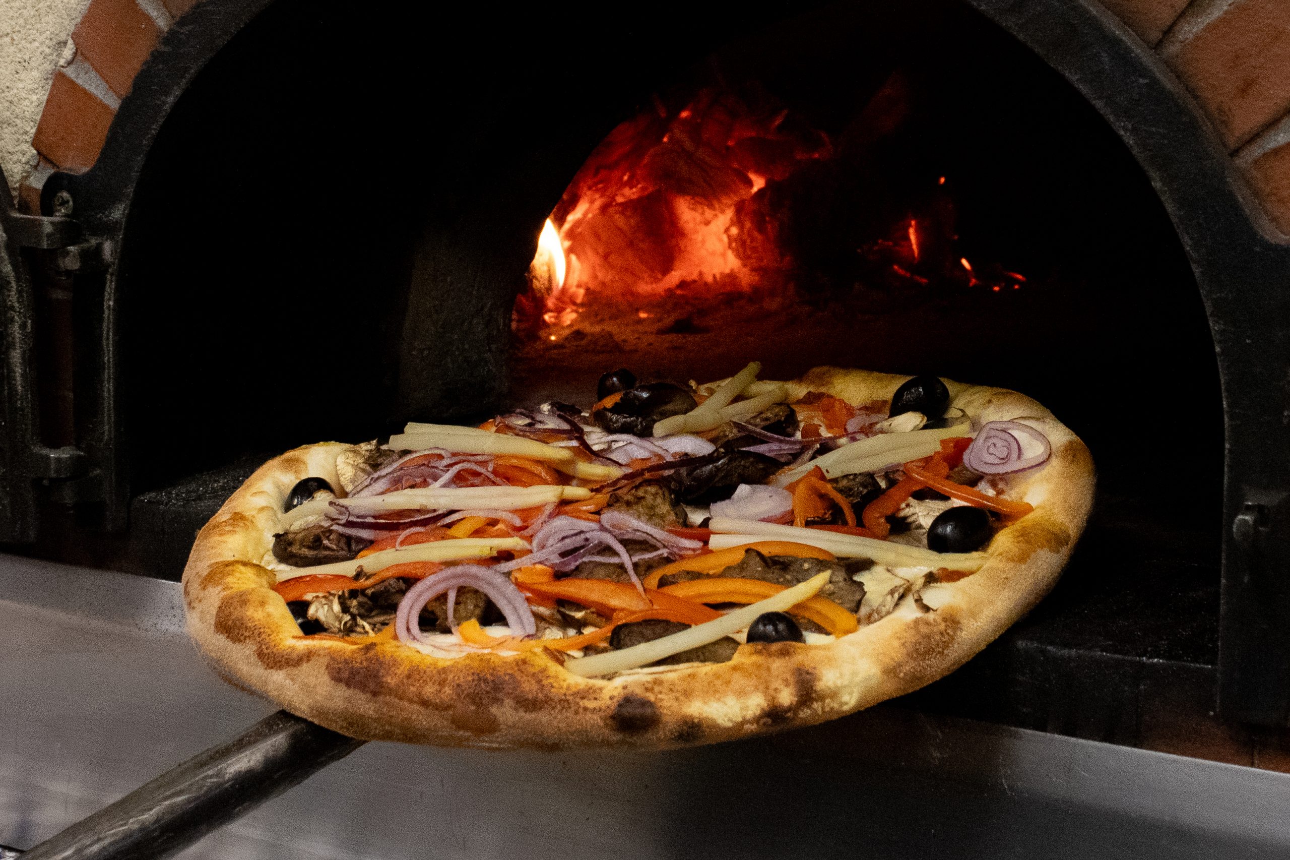 Champignons, olives, oignons, aubergines marinées, poivrons, asperges, emmental, mozzarella. Allergènes : gluten, lait. Petite : 6,50€