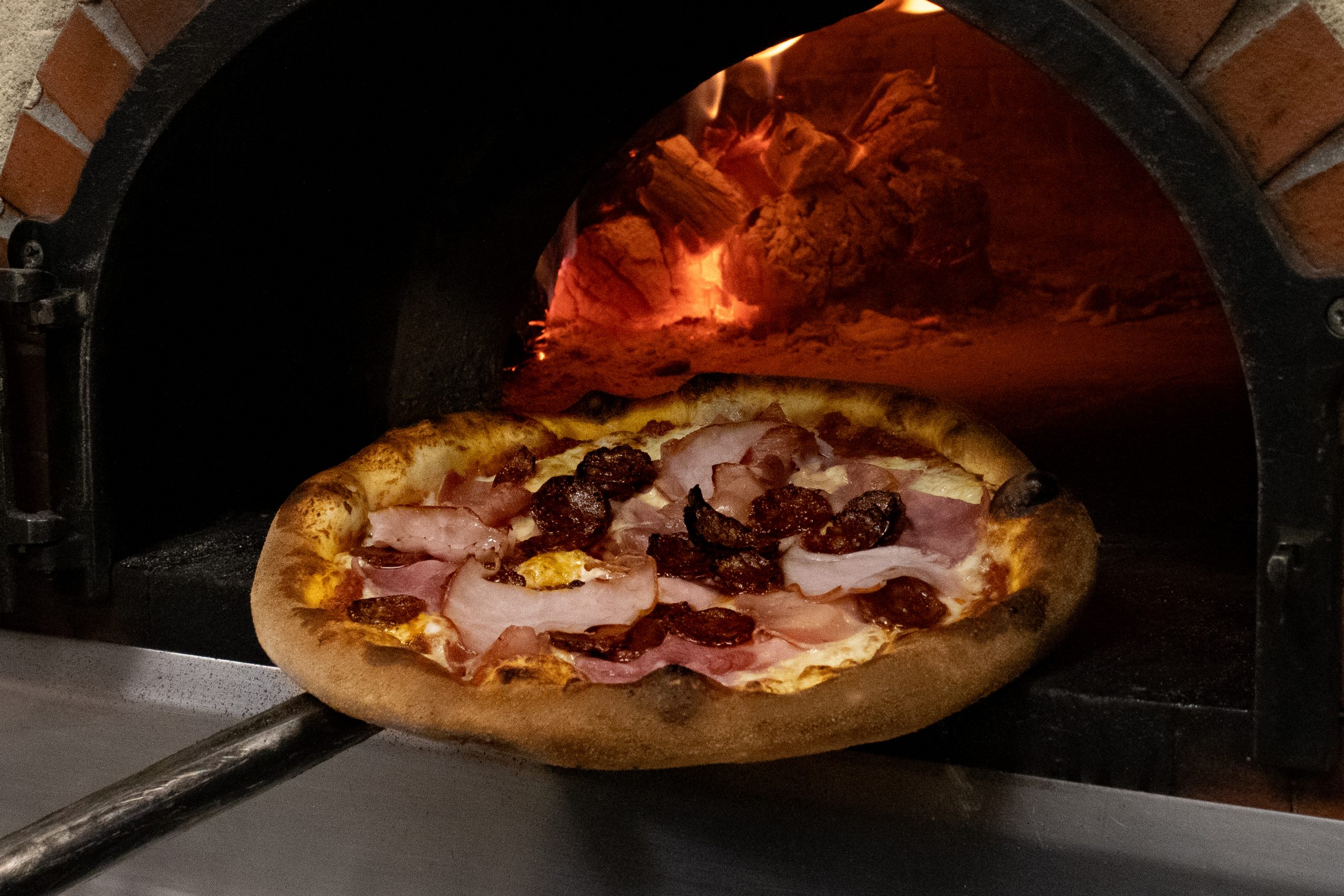 Sauce tomate, bacon, jambon banc, chorizo, jambon serrano, emmental, mozzarella. Petite : 8,00€