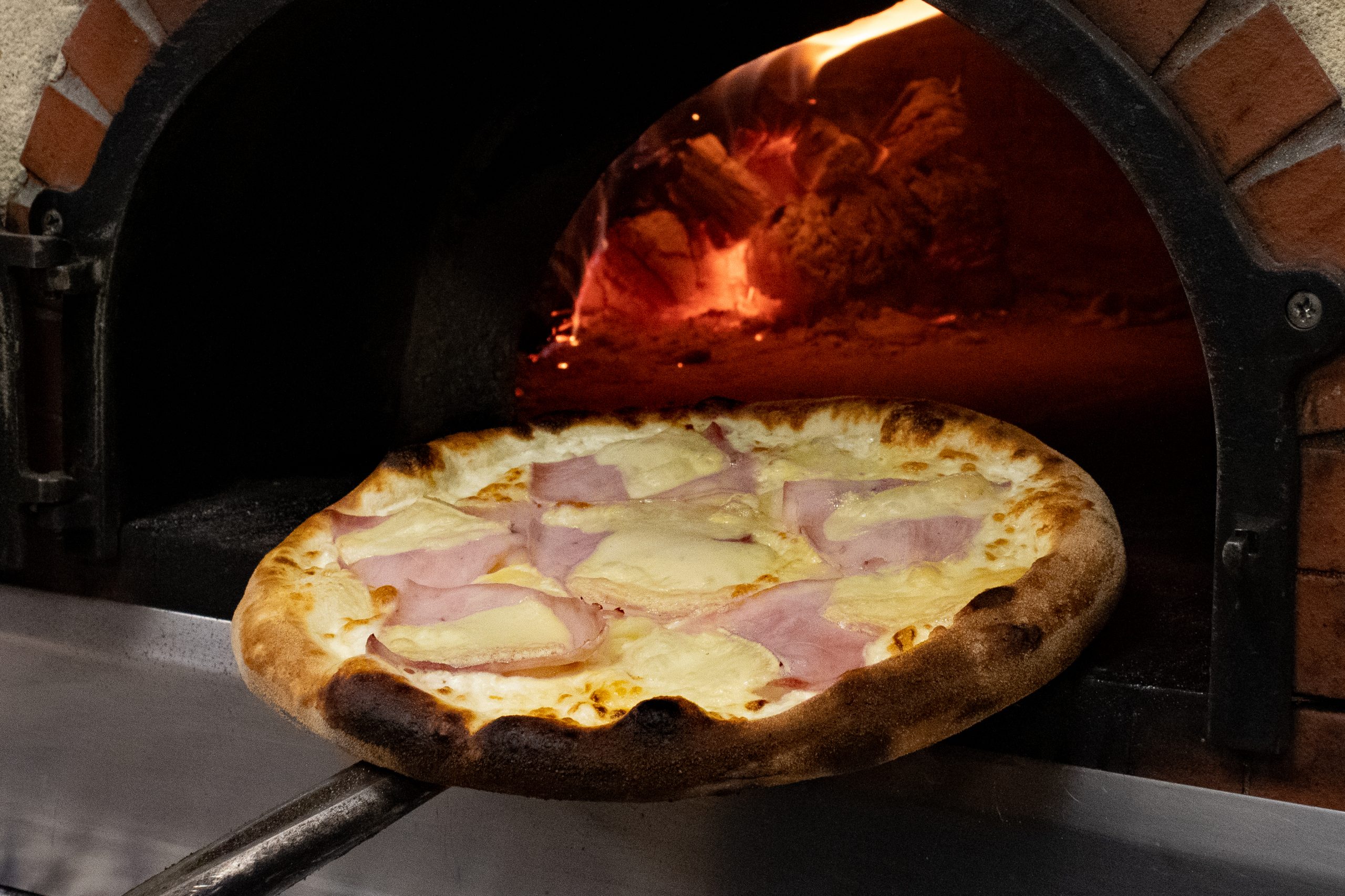 Jambon blanc, œufs, champignons, emmental, mozzarella. Allergènes : gluten, œufs, lait