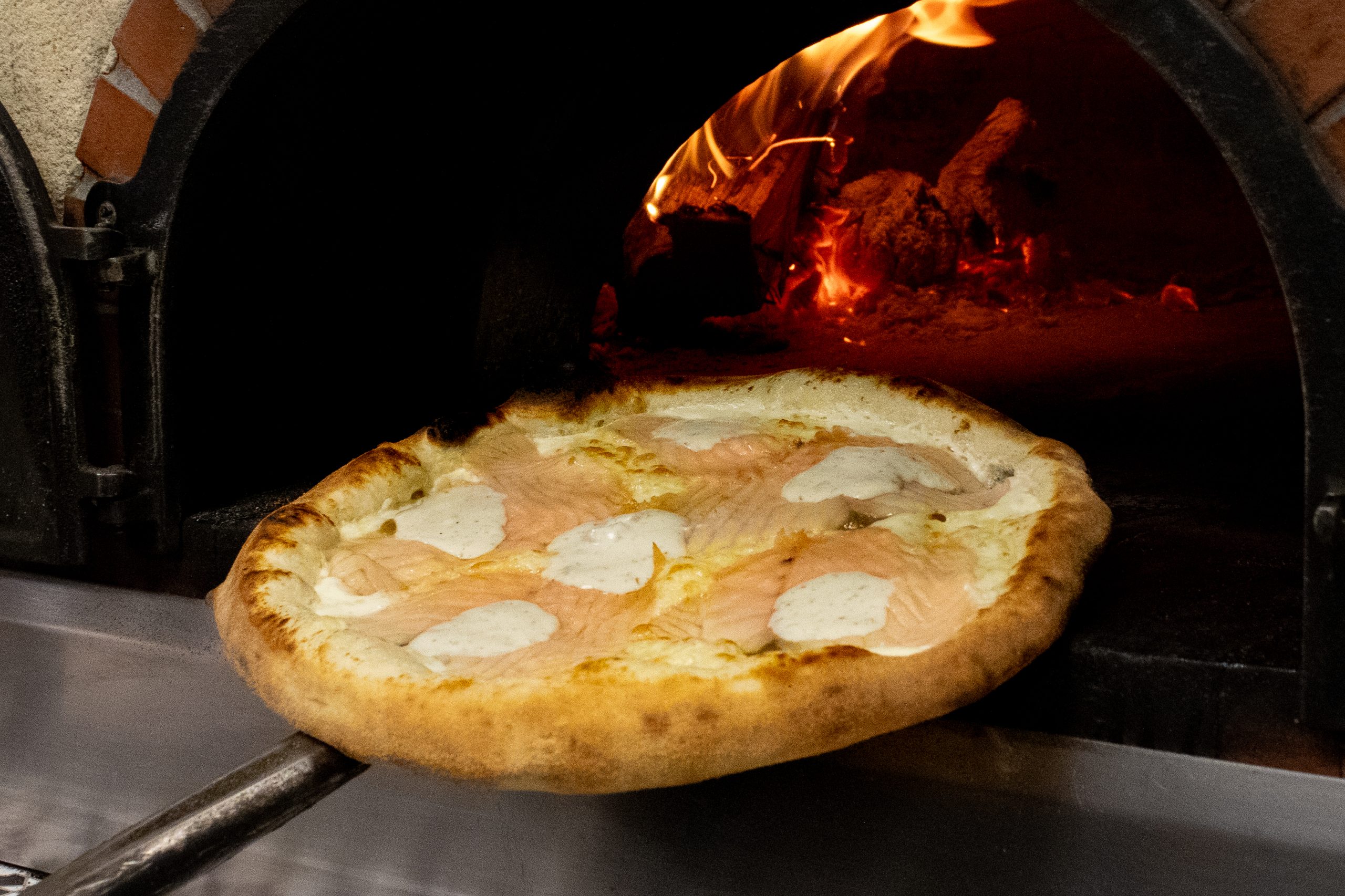 Crème, cantadou ail et fines herbes, saumon fumé, emmental, mozzarella. Petite : 10,00€