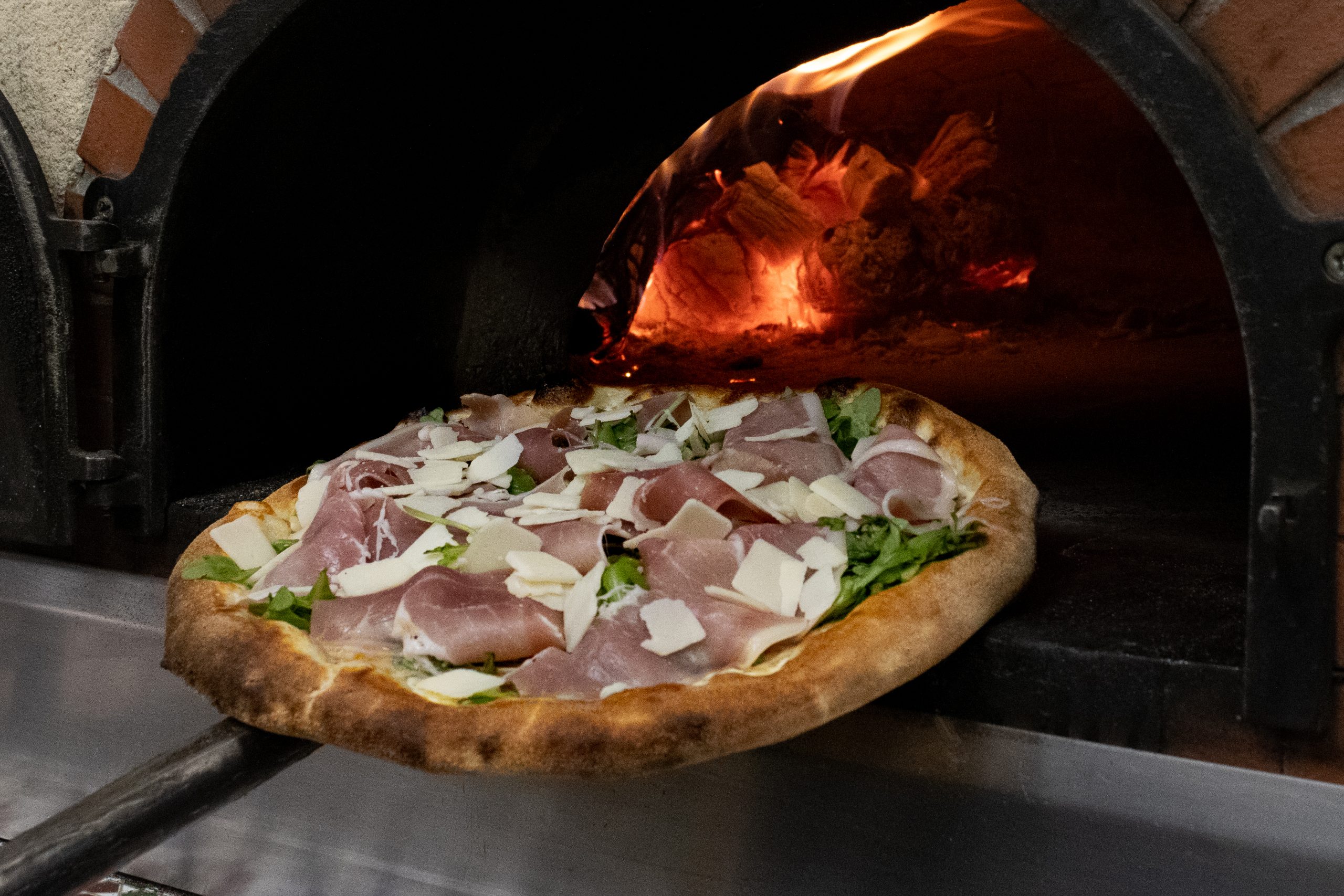 Crème fraiche, crème champignon Tartufata, parmesan, jambon serrano, roquette, mozzarella. Petite : 10,00€